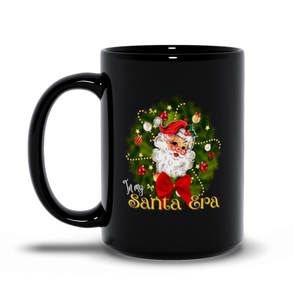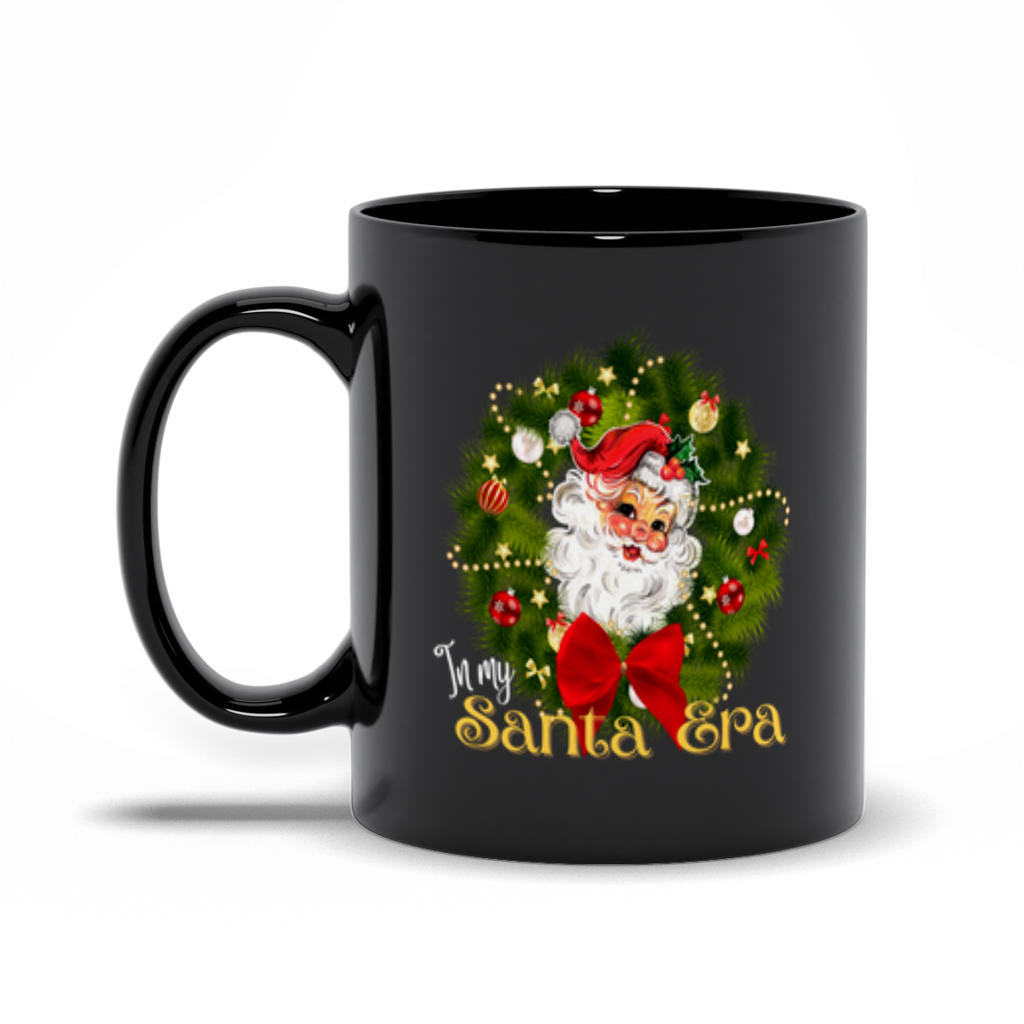 Step into your Santa Era with this festive and fabulous holiday design! Featuring a retro-inspired Santa Claus peeking out from a cheerful Christmas wreath, this colorful creation is a joyful nod to the most magical season of the year. With a bright red bow and vintage charm, it's perfect for your seasonal sips or gifting moments with flair.